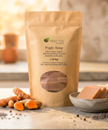 Our turmeric soap is infused with a hefty amount of turmeric, we have added not only organic turmeric root but also 100% Pure turmeric root essential oil.