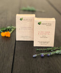 Certified Organic RSPO Sustainable Palm Oil, Coconut Oil, Certified Organic Sunflower Oil, Certified Organic Unrefined Shea Nut Butter, Certified Organic Extra Virgin Olive Oil, Certified Organic Castor Bean Oil, Calamine Powder, Certified Organic Colloidal Oats, Certified Organic Aloe Vera, Kaolin Clay, 100% Pure Essential Oil Blend, Sodium Hydroxide (key element to making soap, none remains in finished product).
