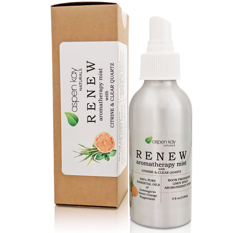 Aromatherapy Spray, Renew, Refresh & Energize. Citrus Blend, Made with Pure Essential Oils. Room & Linen Spray, with Citrine & Quartz Crystals in Each Bottle. 4oz